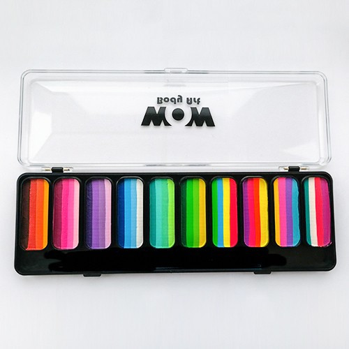 WOW body art пропонує чудову лінійку неонових, перламутрових і стандартних кольорів професійного гриму на водній основі. Плюсами аквагриму WOW є не тільки доступна ціна, на відміну від розрекламованих брендів, але й те, що він має прекрасну консистенцію і яскраві кольори, які легко наносити й так само легко змивати.